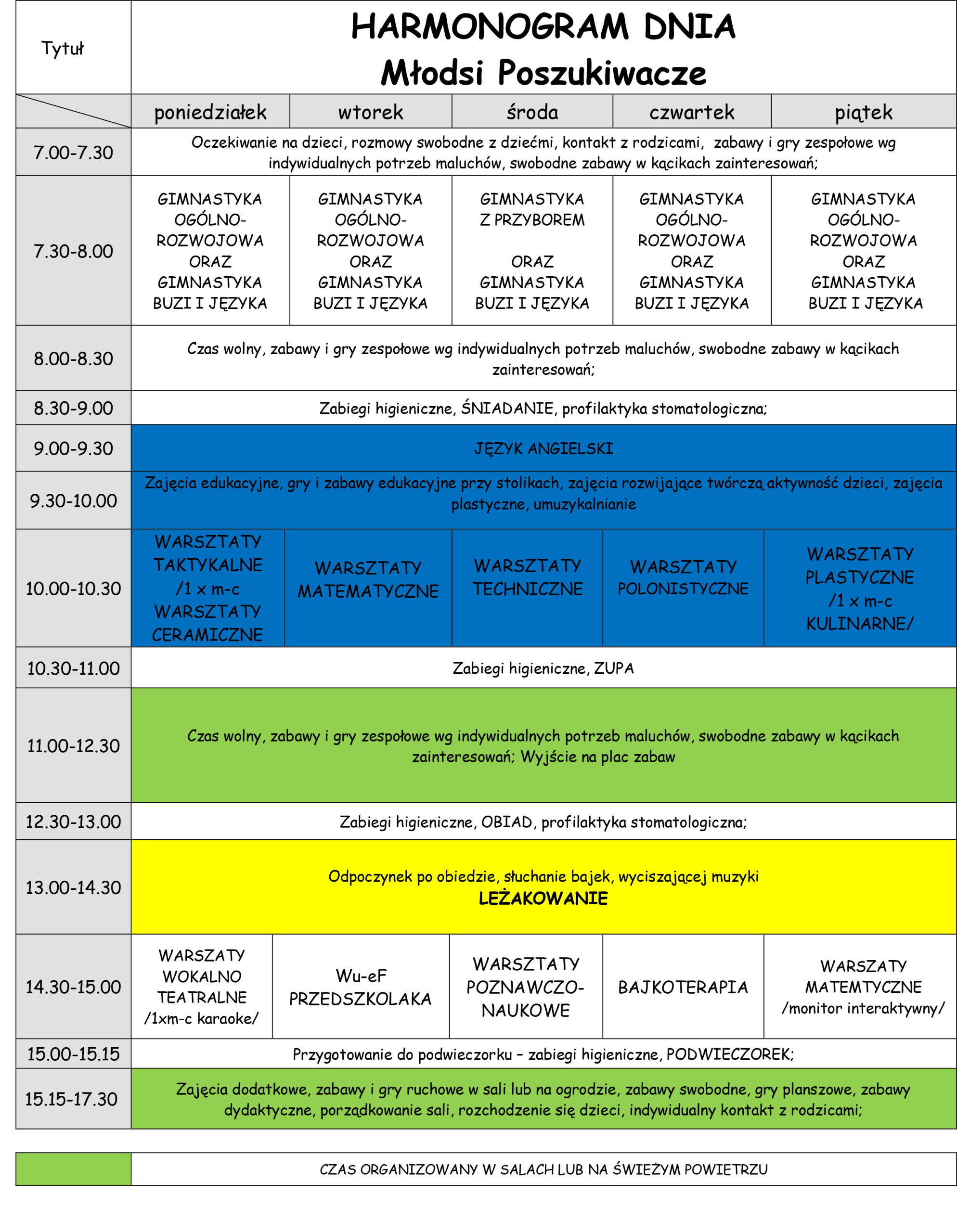 HARMONOGRAM DNIA W PRZEDSZKOLU